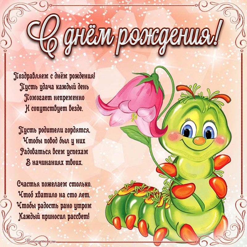 Открытка с мультяшкой и стихотворением на день рождения детям