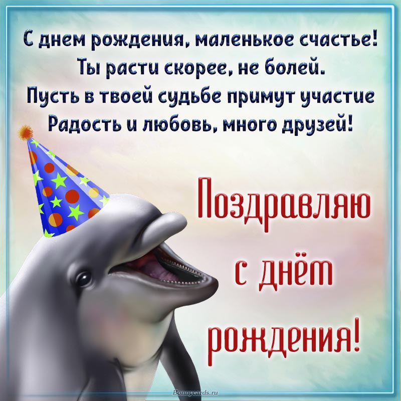 Великолепная картинка с весёлым дельфином для детей на день рождения