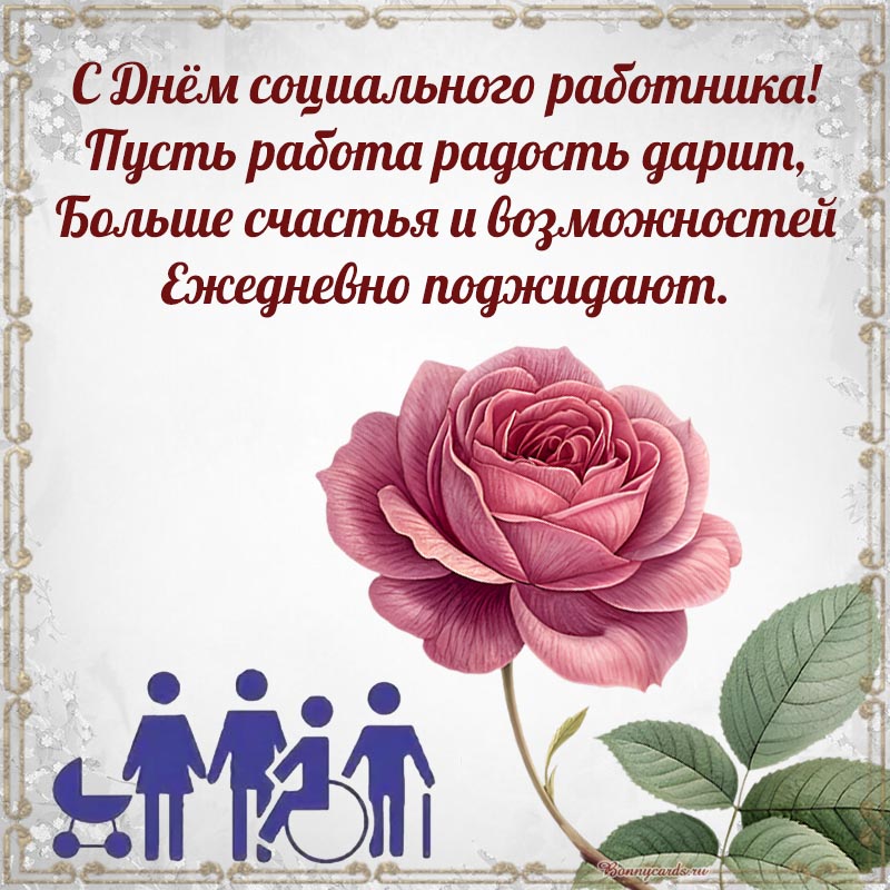 Открытка на День социального работника - цветок и пожелание счастья и возможностей в рамочке