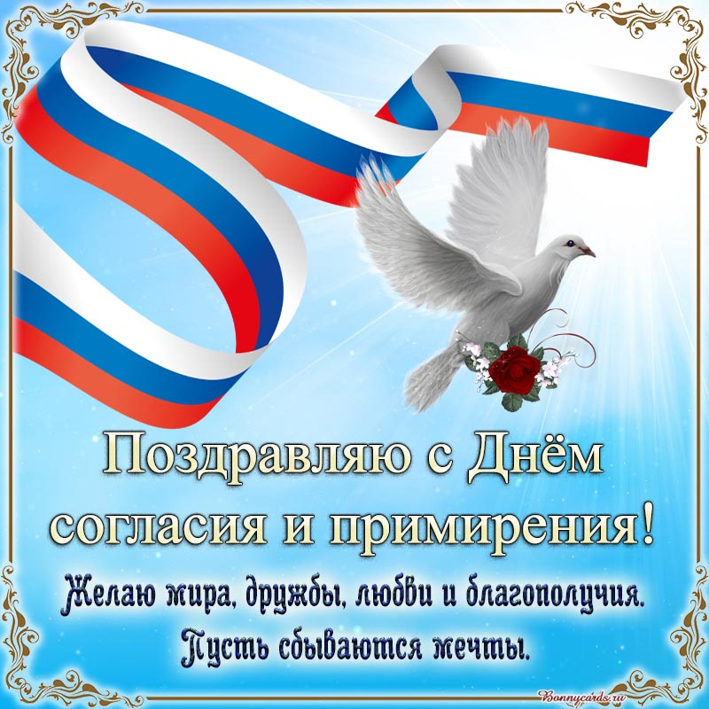 Открытка на День согласия и примирения. Поздравляю и желаю мира, дружбы, любви, благополучия