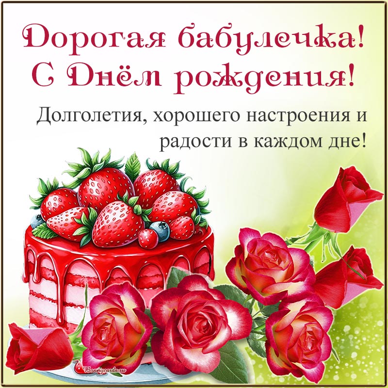 Великолепная открытка с тортом и розами бабулечке на день рождения