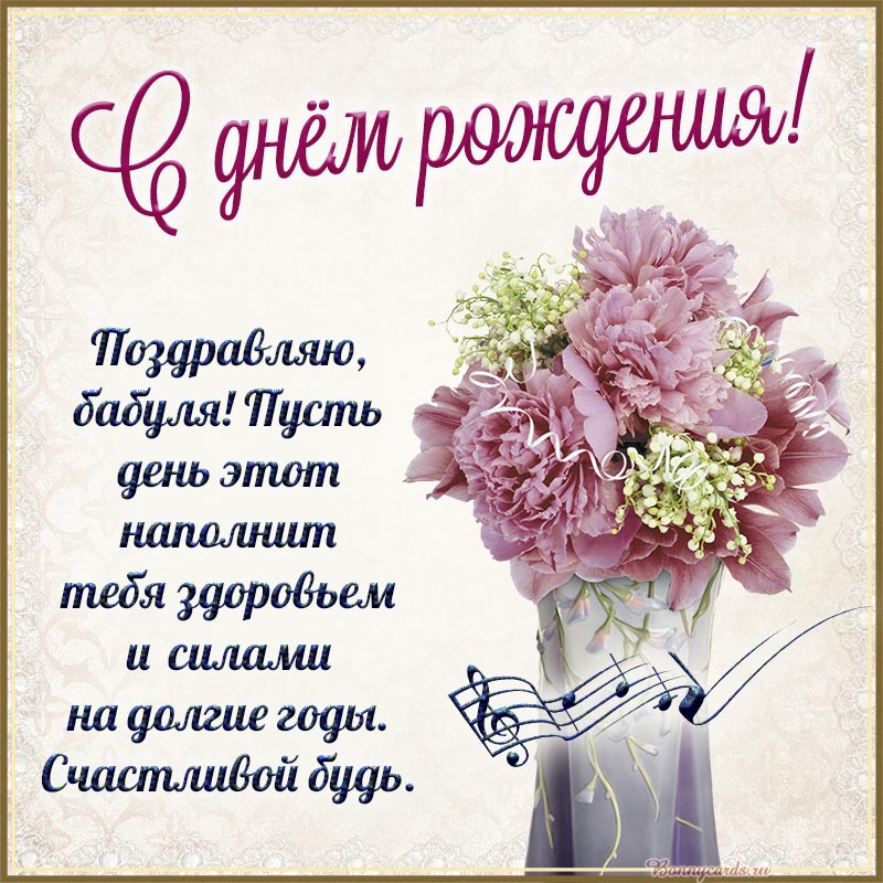 Поздравляю, бабуля, с днём рождения, счастливой будь.