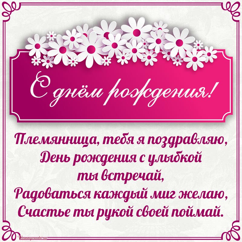 Цветочки племяннице и текст в рамочке - с днём рождения