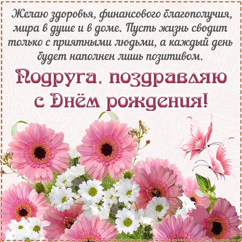 Открытка на день рождения - пожелание подруге здоровья и финансового благополучия