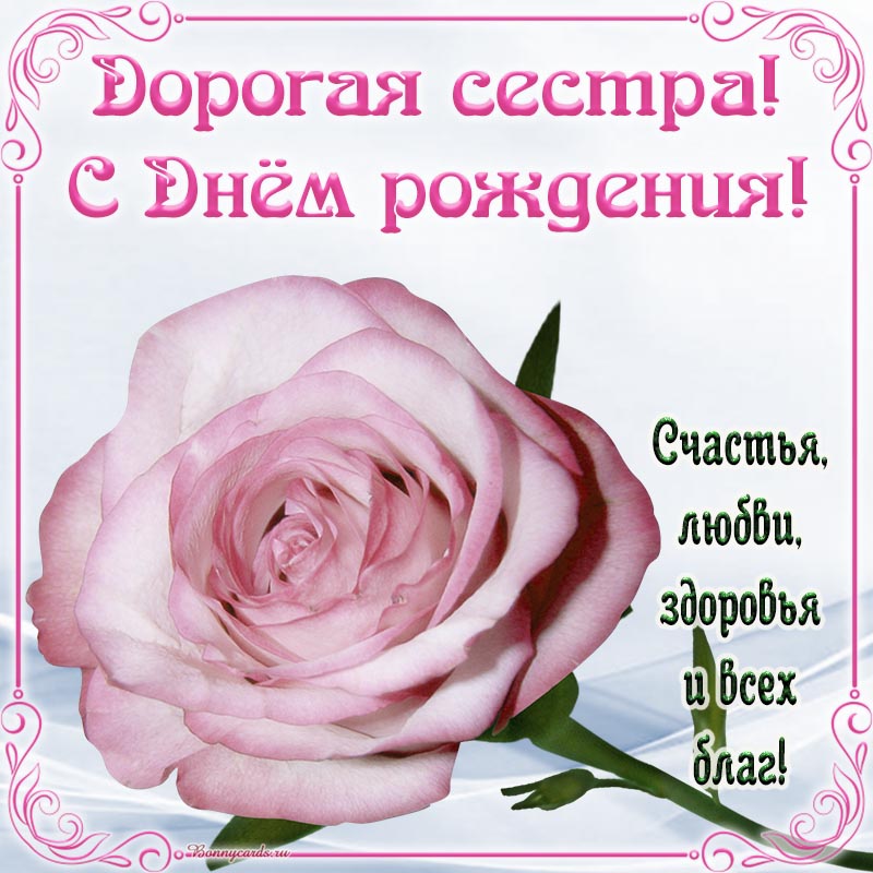 Красивый цветок и текст - дорогая сестра, с днём рождения