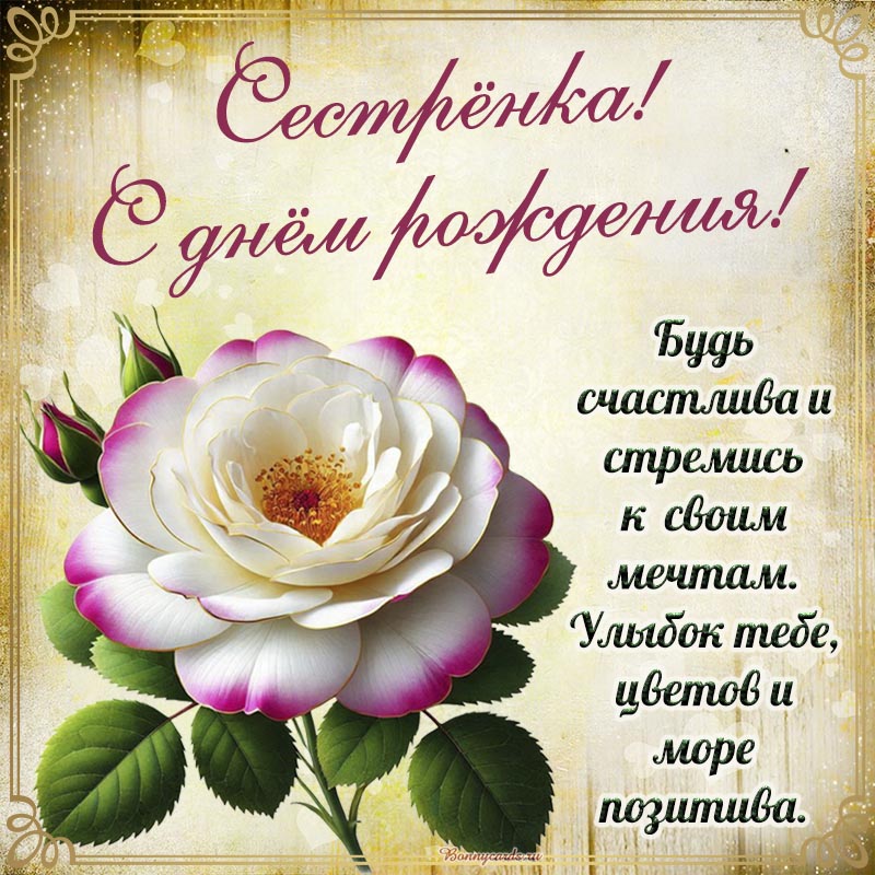 Открытка на день рождения - сестрёнка, будь счастлива и стремись к своим мечтам