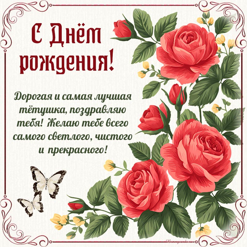 Открытка на день рождения. Текст - дорогая и самая лучшая тётушка, поздравляю тебя