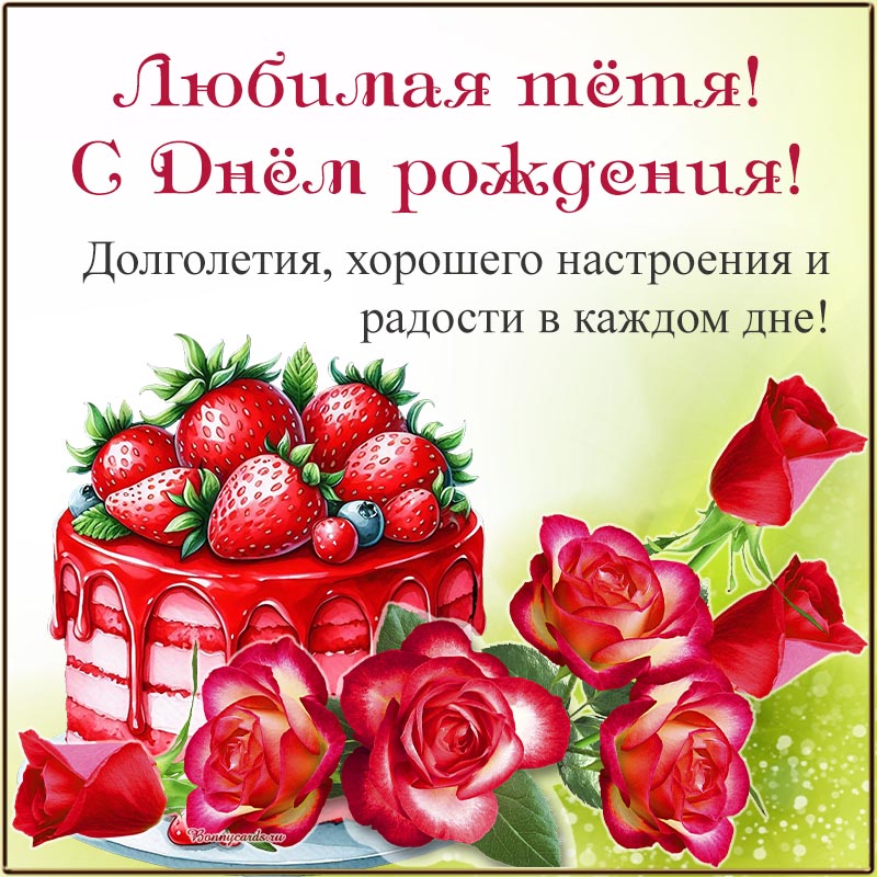 Открытка - торт с клубникой и поздравление тёте на день рождения