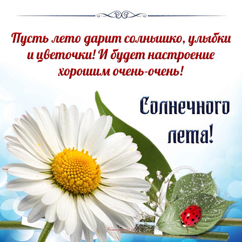 Открытка - цветок, божья коровка и пожелание солнечного лета