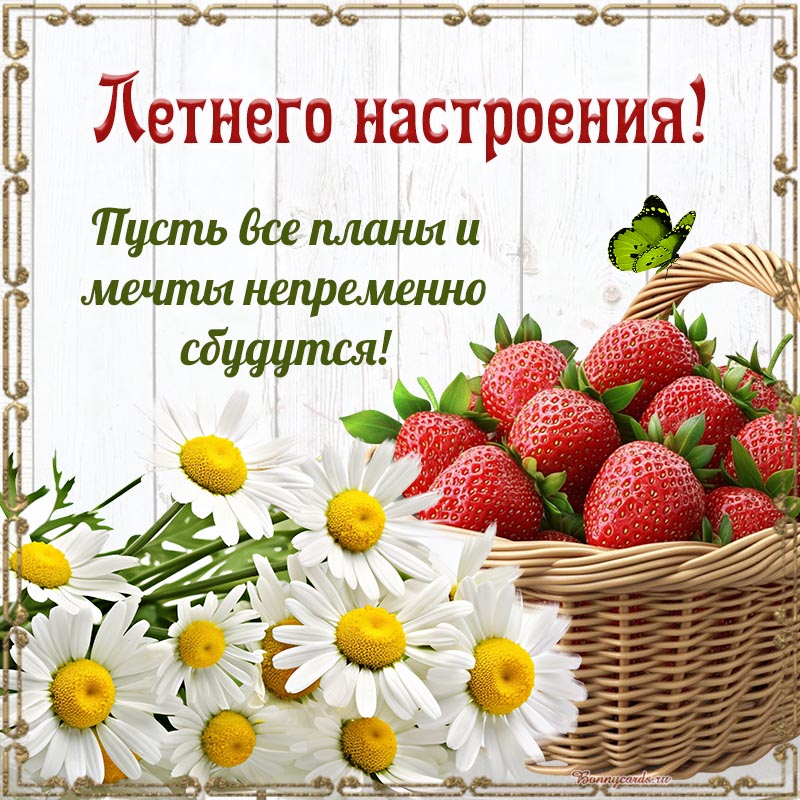 Замечательная картинка на лето с клубникой и ромашками