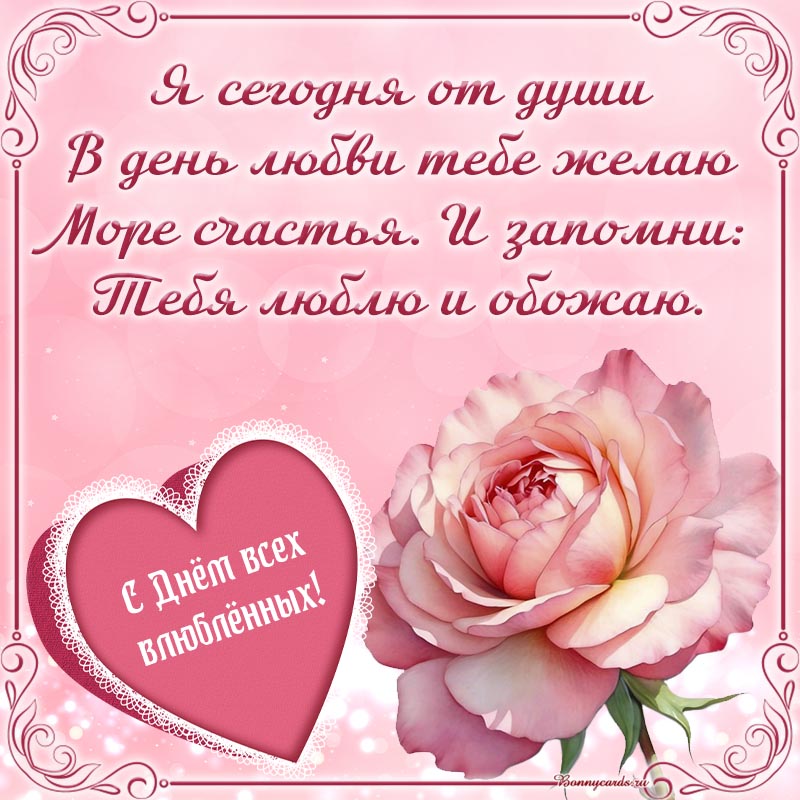 Картинка с розочкой и стихами на День всех влюблённых