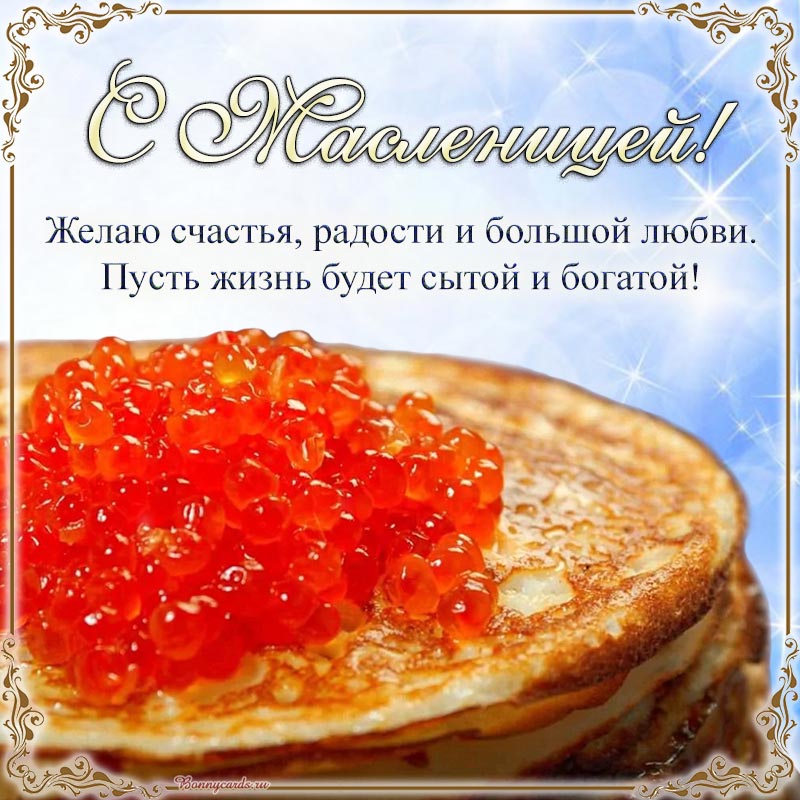 Изумительная открытка с блинами и икрой на Масленицу