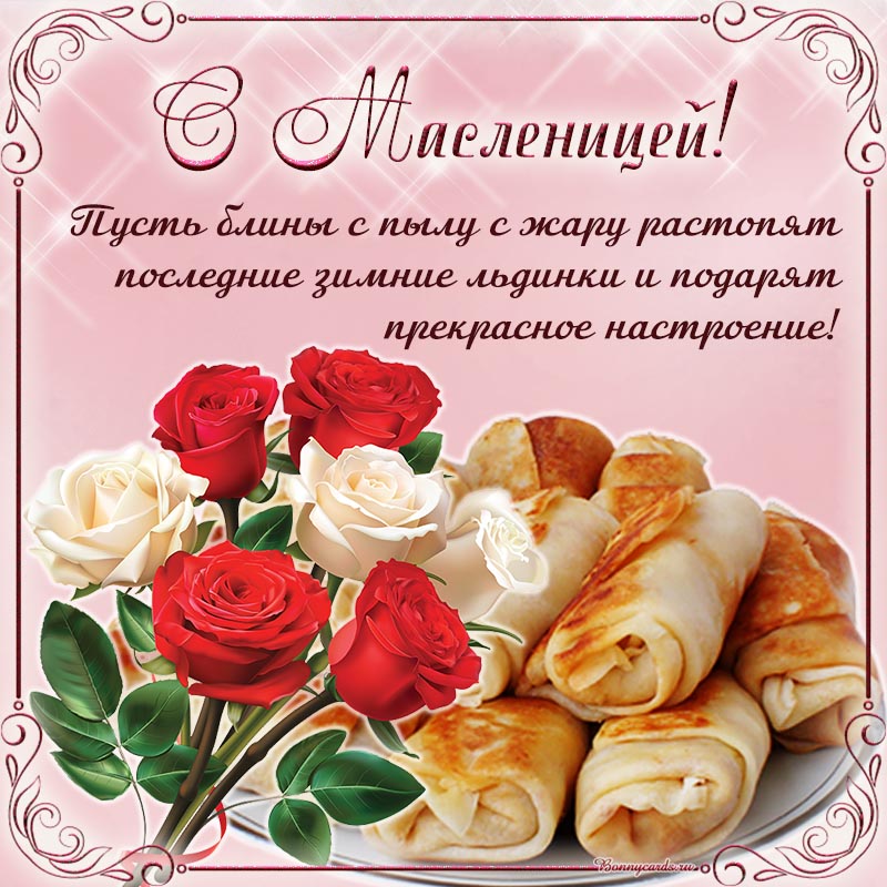 Букет в рамочке и великолепное поздравление с Масленицей.