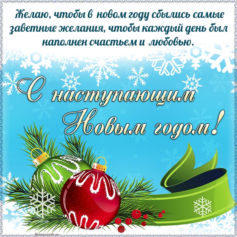 Снежинки и отличное пожелание с наступающим Новым годом.