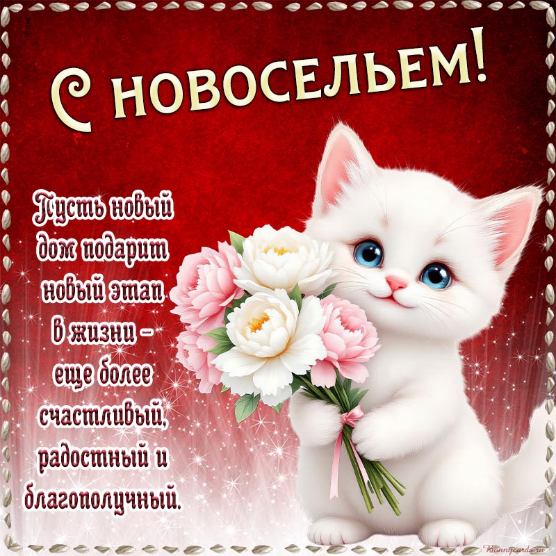 Супер картинка на новоселье с котом на красном фоне