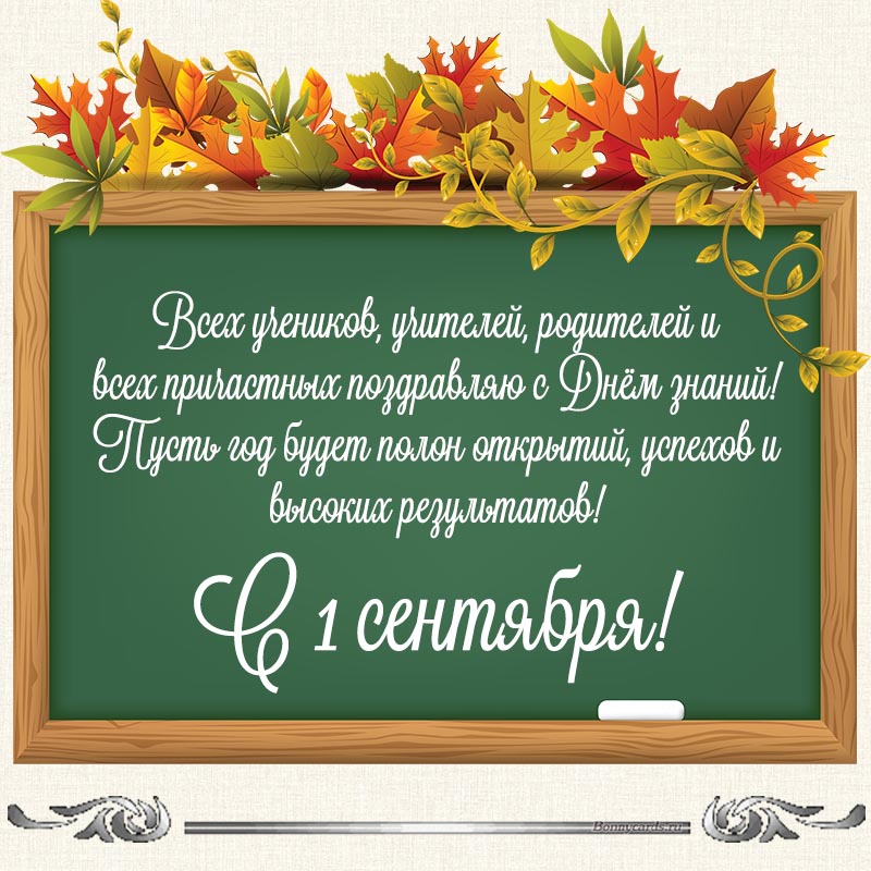 Открытка - поздравление с 1 сентября для всех учеников, учителей