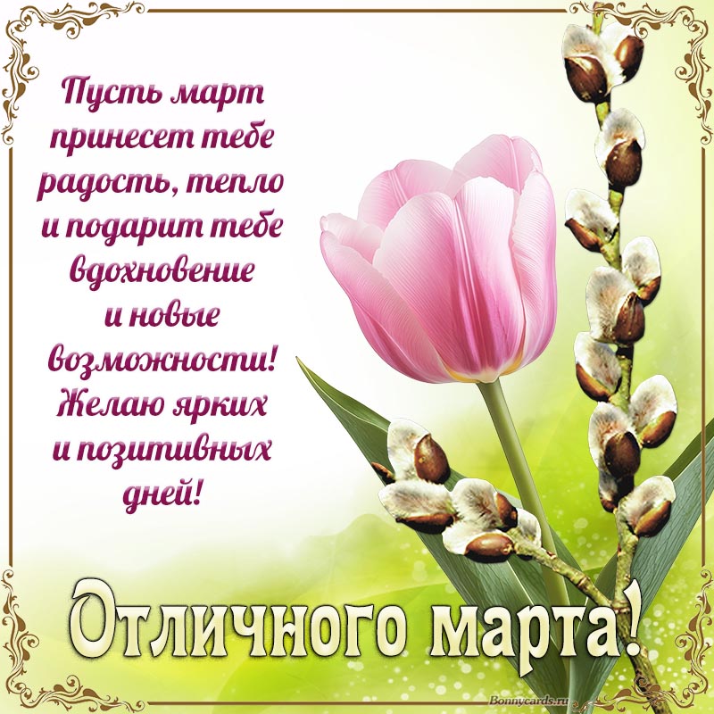 Открытка - пусть март принесет радость, тепло и подарит вдохновение
