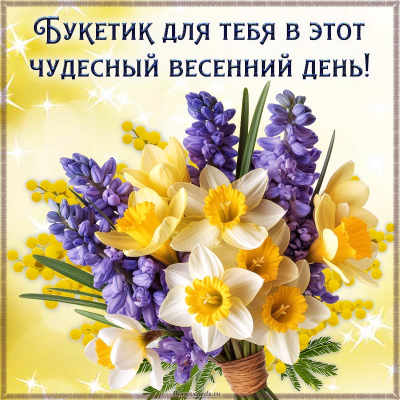 Надпись - букетик для тебя в этот чудесный весенний день.