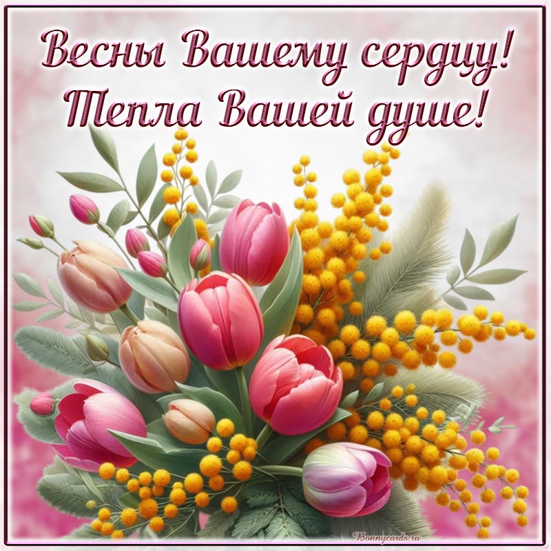 Мимоза, яркие тюльпаны и фраза - весны вашему сердцу