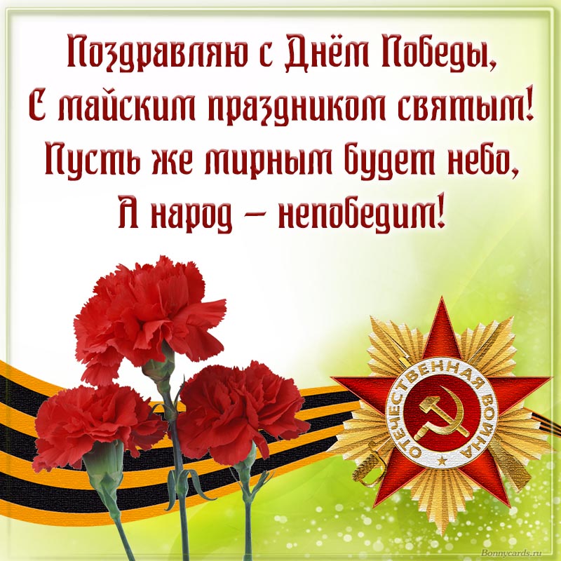 Открытка - гвоздики и отличное поздравление в стихах с Днём Победы
