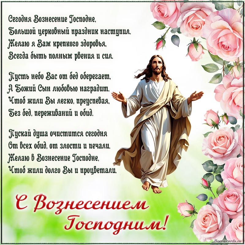 Открытка - нежные розы и стихотворение на Вознесение Господне