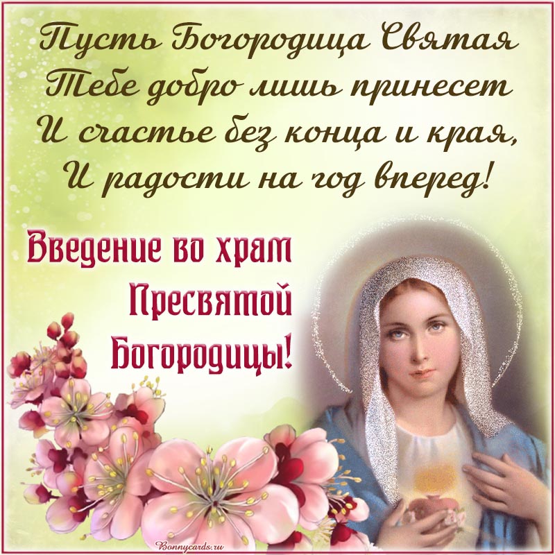 Открытка - цветы и поздравление в стихах на Введение во храм Пресвятой Богородицы