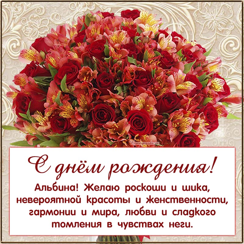 Открытка Альбине на день рождения. Желаю роскоши и шика, невероятной красоты и женственности
