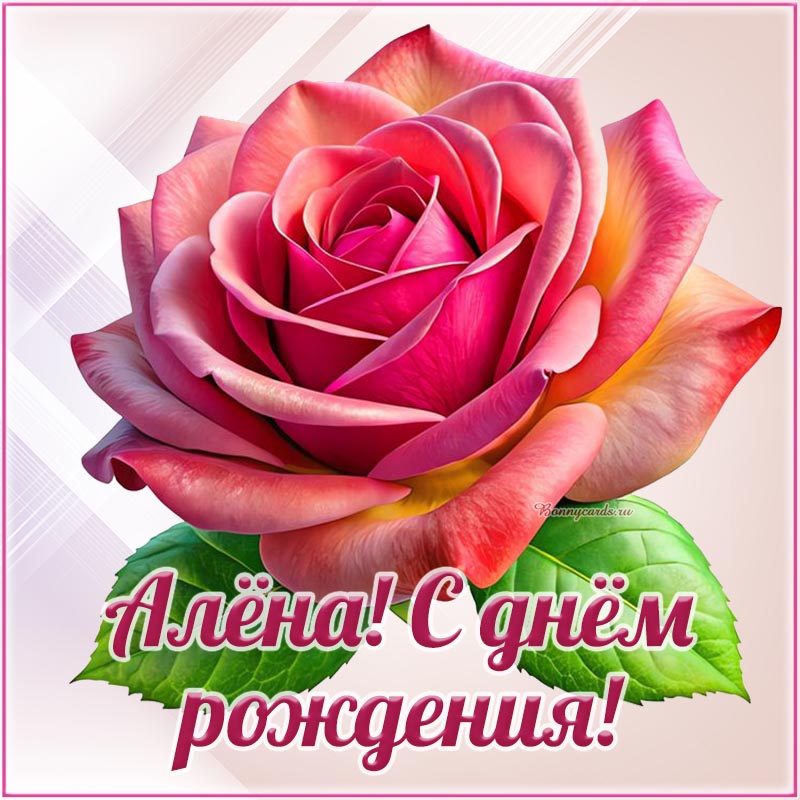 Шикарная розочка и надпись - Алёна, с днём рождения