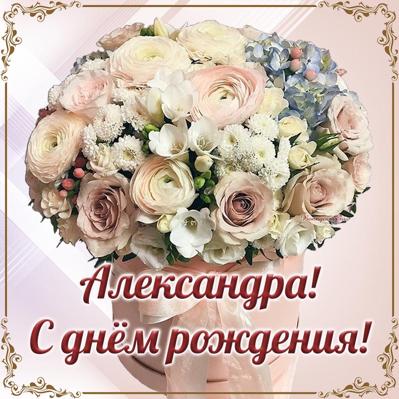 Открытка в прекрасном исполнении с именем Александра на день рождения