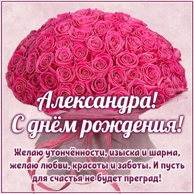 Открытка на день рождения - Александра, желаю утонченности, изыска, шарма, красоты