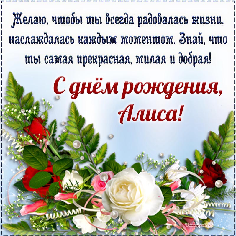 Открытка - Алиса, с днём рождения, знай, что ты самая прекрасная