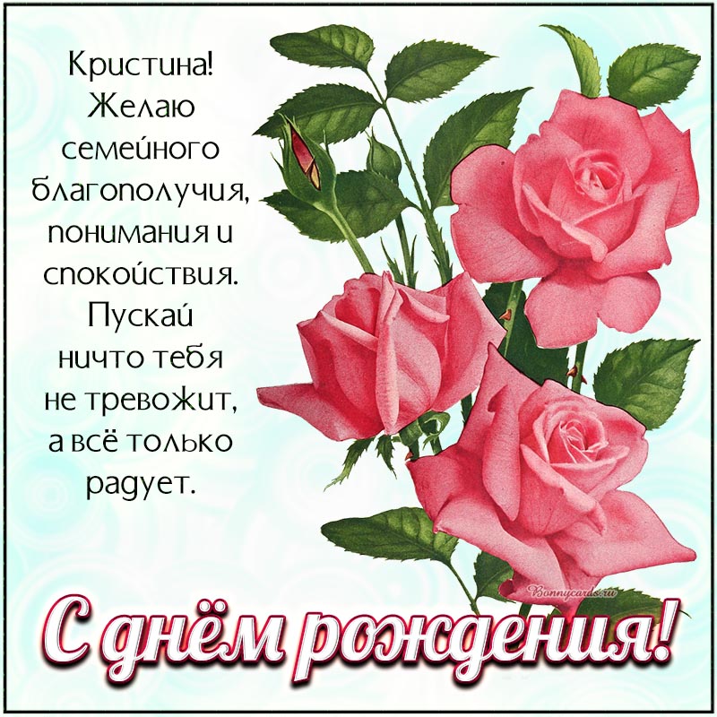 Открытка - розы и сердечное поздравление Кристине с днём рождения