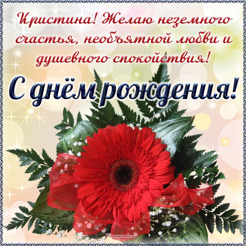 Открытка на день рождения - красный цветок и прелестное поздравление Кристине