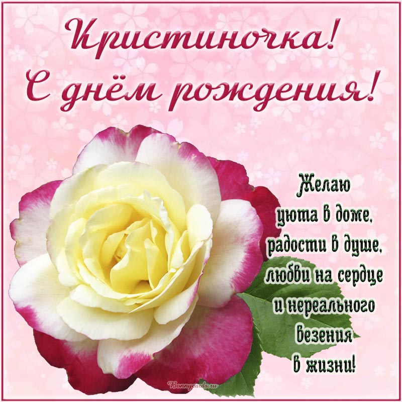 Открытка на день рождения - Кристиночка, желаю уюта в доме, радости и везения