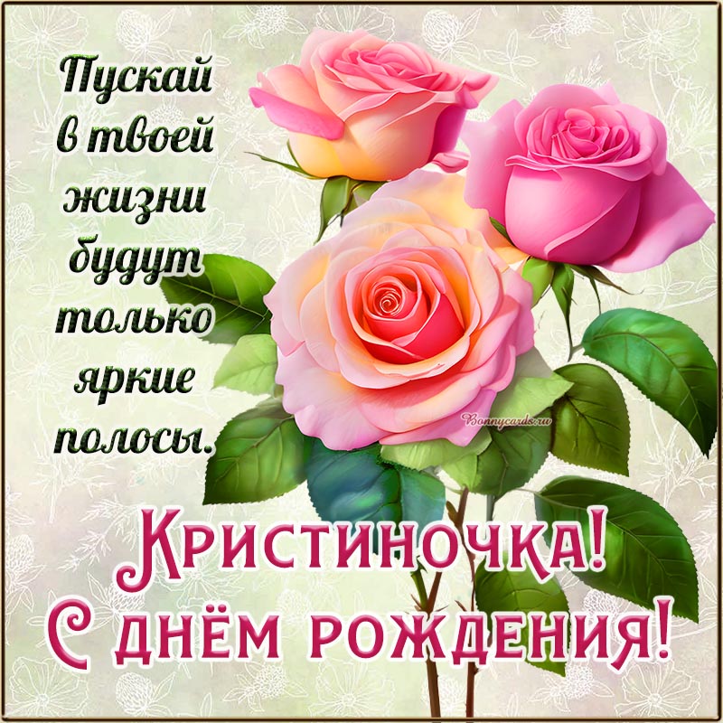 Открытка на день рождения - превосходное поздравление и шикарные розы Кристиночке