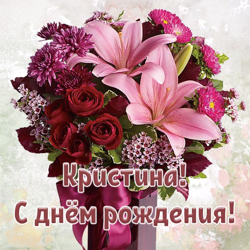 Красивый букетик и текст - Кристина, с днём рождения