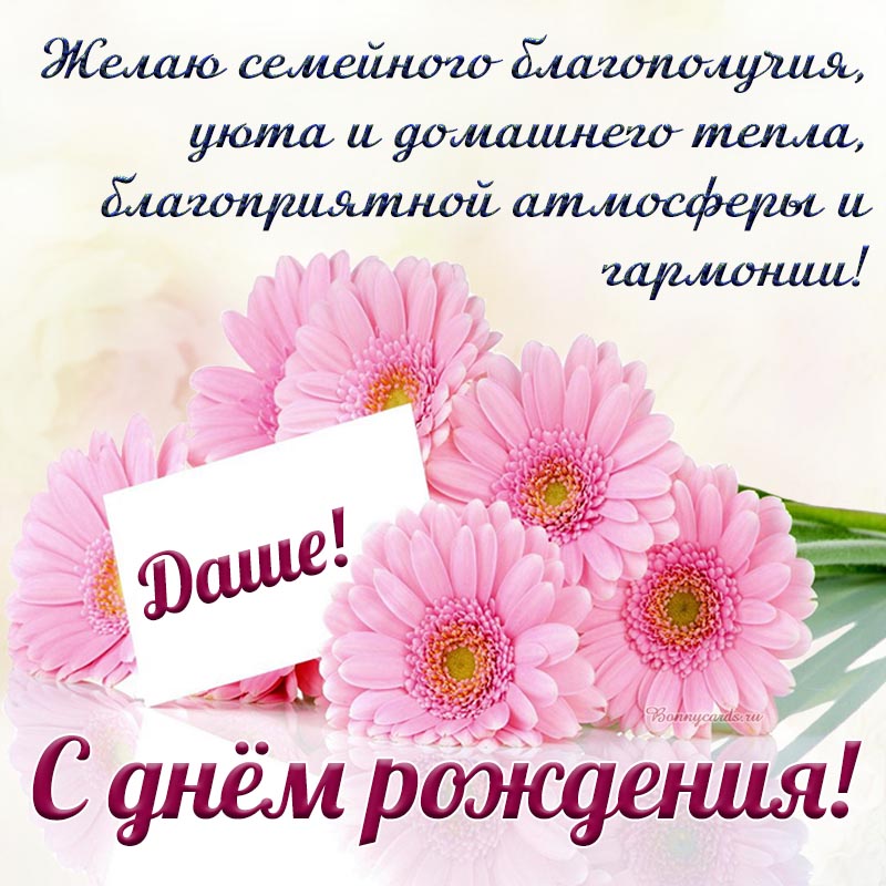 Открытка на день рождения - Даша, желаю семейного благополучия, уюта, тепла, гармонии