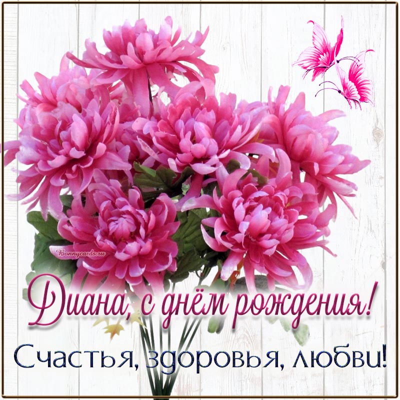 Поздравление, цветы и бабочки Диане на день рождения.
