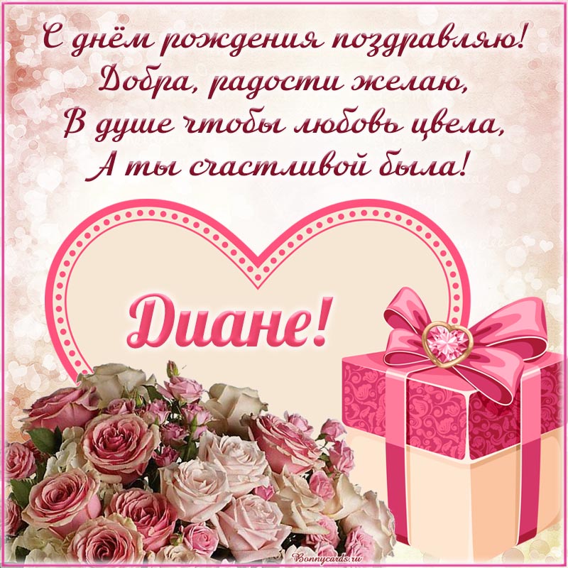 Поздравительная картинка с подарком и сердечком Диане на день рождения