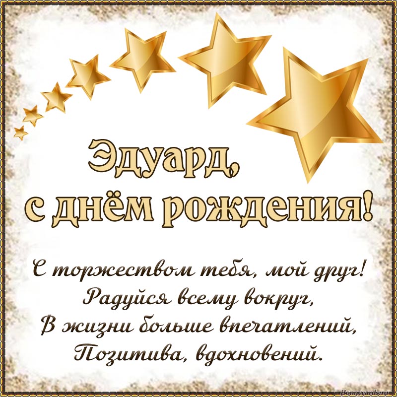 Открытка на день рождения. Эдуард, с торжеством тебя, мой друг, радуйся всему вокруг