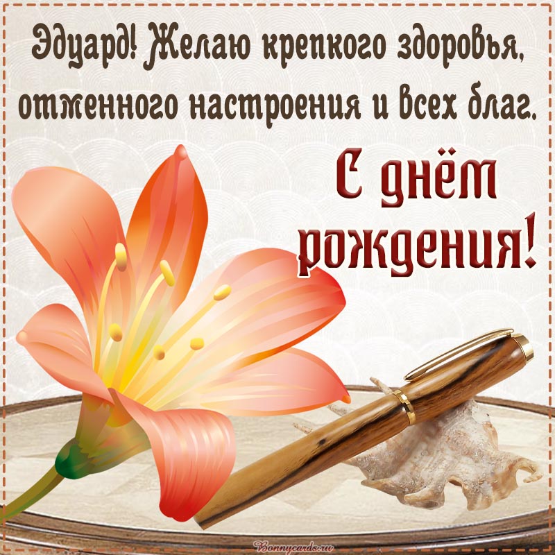 Открытка на день рождения - красивый цветок, ручка и супер поздравление Эдуарду
