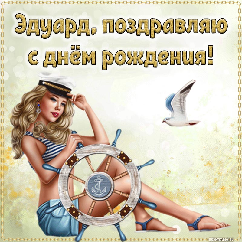 Картинка с девушкой и штурвалом Эдуарду на день рождения