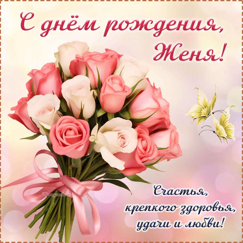 Ослепительная картинка с букетом на день рождения Жене.