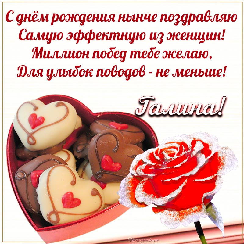 Открытка на день рождения - поздравление в стихах и сладости в шоколаде Галине