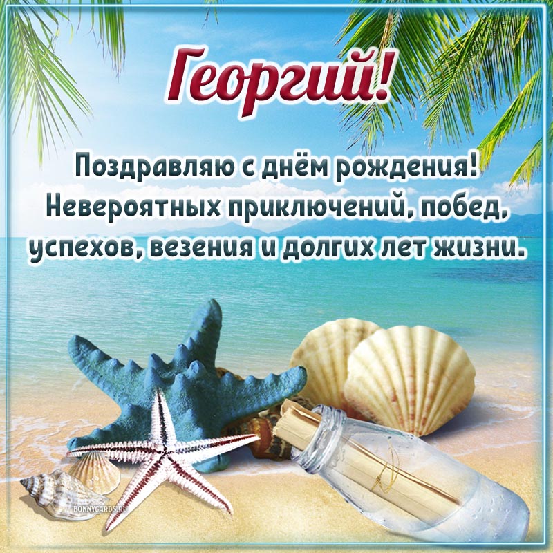 Открытка Георгию на день рождения. Пожелание невероятных приключений, успехов, везения