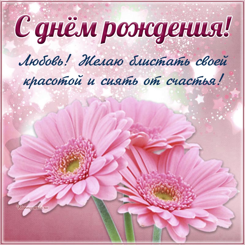 Открытка на день рождения. Розовые герберы и душевное поздравление для Любови