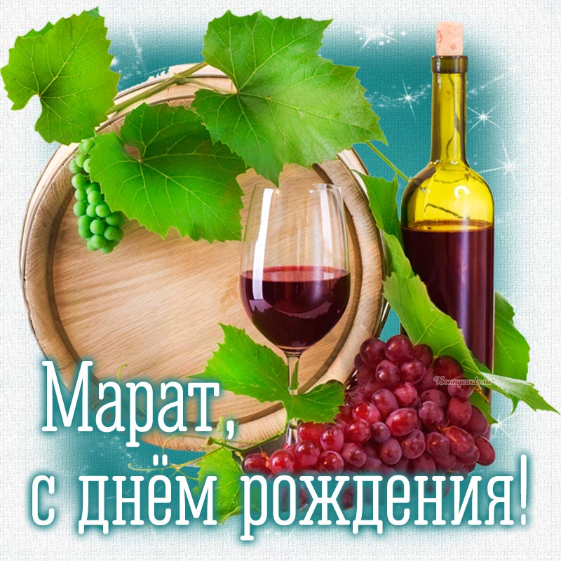 Супер открытка с виноградом и бочонком на день рождения Марату