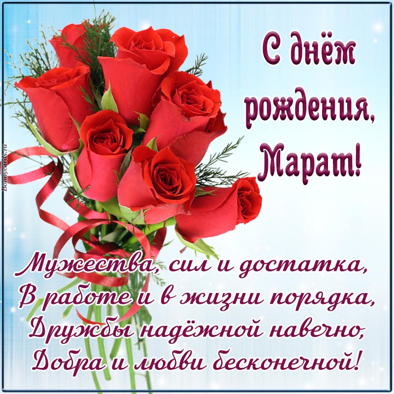Открытка - стихотворение и красивый букет на день рождения Марату