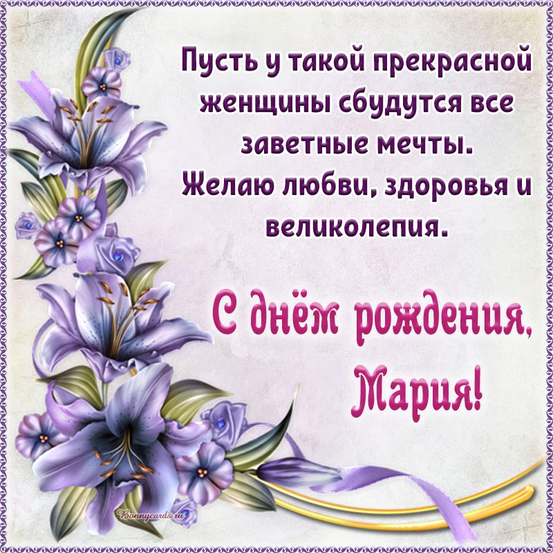 Открытка на день рождения - Мария, желаю великолепия и любви, пусть сбудутся мечты