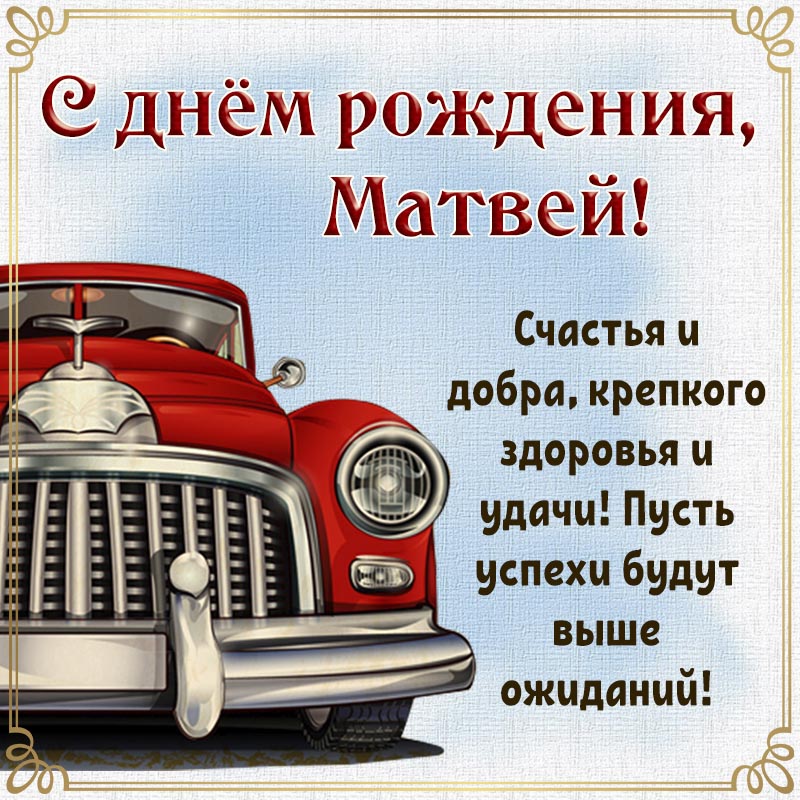 Открытка Матвею на день рождения. Счастья, добра, удачи, пусть успехи будут выше ожиданий